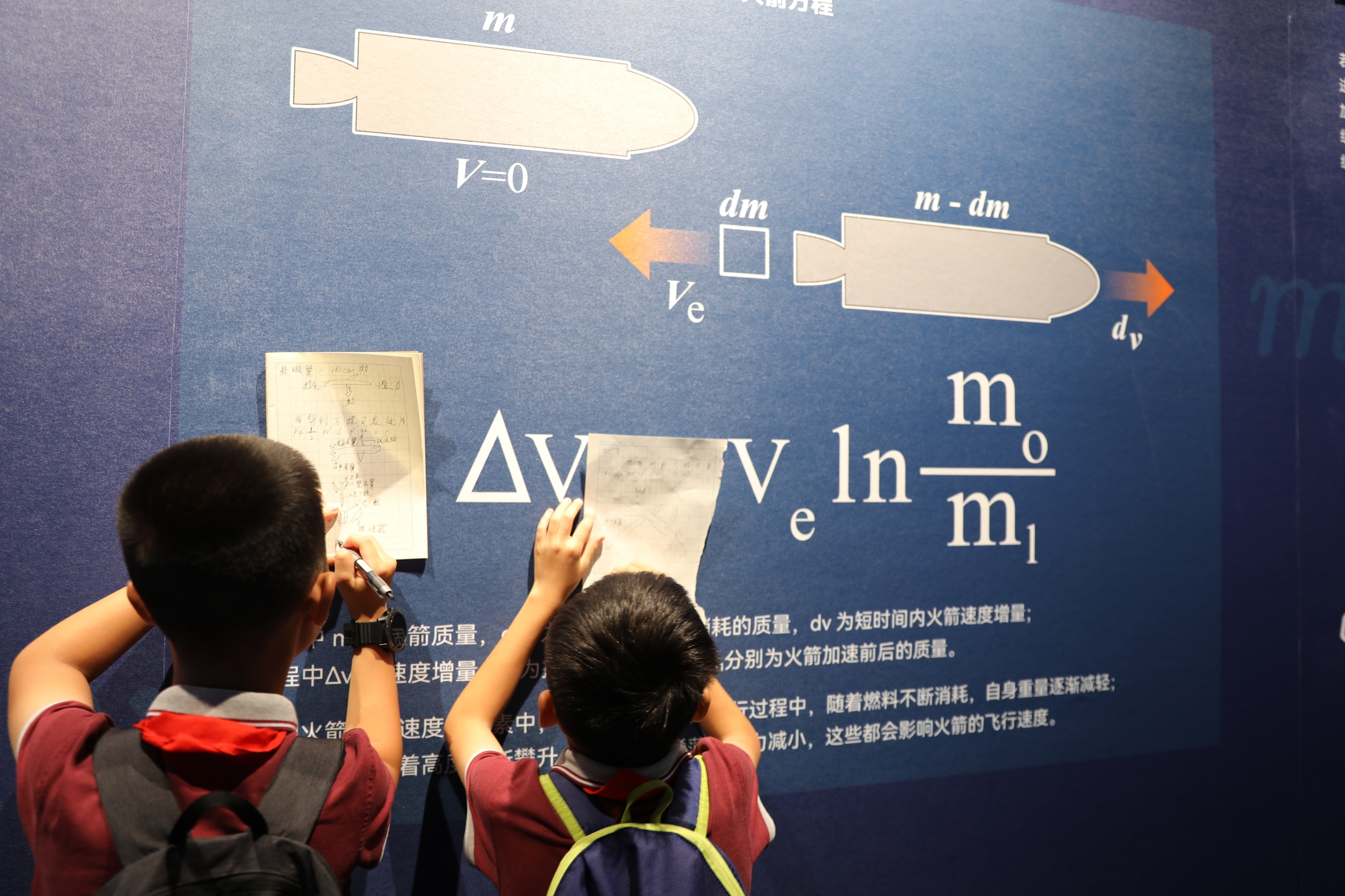 孩子们近距离观摩7倍音速飞行器“MD-22”、太空火箭、飞行背包等前沿空天飞行器,深入了解人类飞行的历史与原理,并观看了无人机表演,感受到中国航天的澎湃力量。